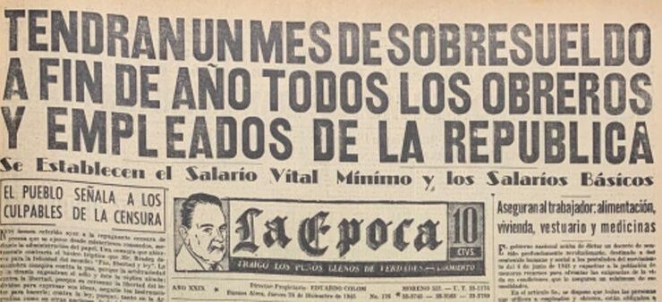 El Decreto 33302, dictado el 20 de diciembre de 1945, establecía el aumento de los salarios, la aplicación del Salario Mínimo Vital y Móvil (SMVYM), la creación del Instituto Nacional de Remuneraciones y la instauración del aguinaldo. En esta tercera y penúltima entrega sobre el