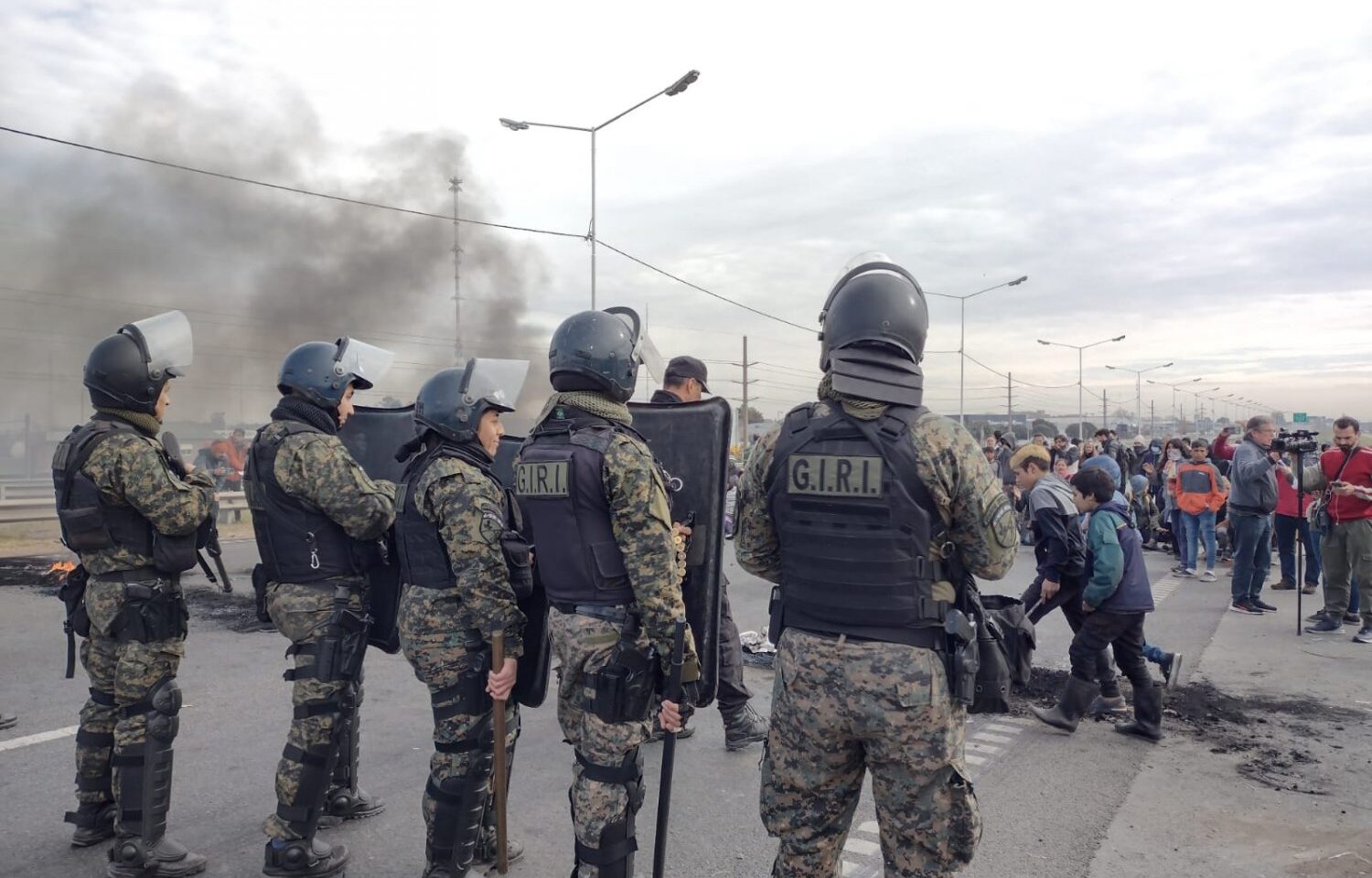 A partir de esa situación y de que los desalojaron de ese terreno, ni se sabe si hay dueño o no, ellos definieron en asamblea hacer un corte de la Circunvalación. Después de ese corte la policía reprimió. Durante esa represión, además de golpear a vecinos, vecinas y a todos los que estábamos ahí apoyando, aprehenden a una mujer, Silvia, que está embarazada de cuatro meses y que sufre presión alta. Fui a asistirla porque la policía le estaba pegando, la esposó y la señora empezó a convulsionar. Ante eso, empezamos entre los periodistas y los que estábamos ahí a intentar que le saquen las esposas y a poder asistirla para que pueda respirar porque directamente se estaba ahogando.
