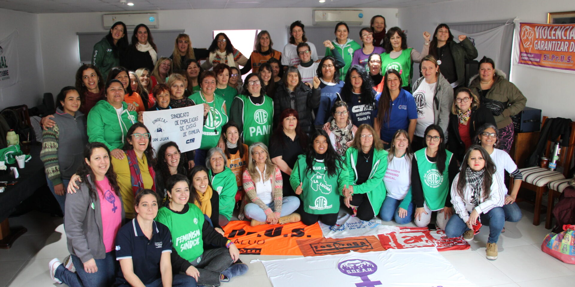 Organizado en conjunto entre Ate Rosario, la Fundación Rosa Luxemburgo y el SOEAR, tuvo lugar la tercera edición del Encuentro Nacional de Feminismo Sindical. Nuevamente fue Rosario la ciudad anfitriona y las jornadas discurrieron en la sede gremial de ATE Rosario y la del SOEAR. En el plenario participaron alrededor de 100 compañerxs de diferentes puntos del país y la mayor riqueza estuvo en la diversidad del entramado porque hubo representantes de gremios diversos y de todas las centrales sindicales. La construcción desde las bases de un sistema integral de cuidados y la necesidad imperiosa de las trabajadoras de imponer el tema en la agenda pública. El debate acerca de las estrategias que se vienen tramando desde el colectivo de mujeres y diversidades de cara a la compleja coyuntura nacional, las políticas de ajuste, el avance de la derecha, el recrudecimiento de la represión y la criminalización de la protesta. Estos fueron algunos de los ejes que sobrevolaron las dos jornadas de intensa actividad que se desarrollaron el viernes 30 de junio y sábado 1 de julio en el marco del III Encuentro Nacional de Feminismo Sindical. Un elemento recurrente en las intervenciones e intercambios: nadie se salva en soledad. En esta nota, las voces de las organizadoras.
